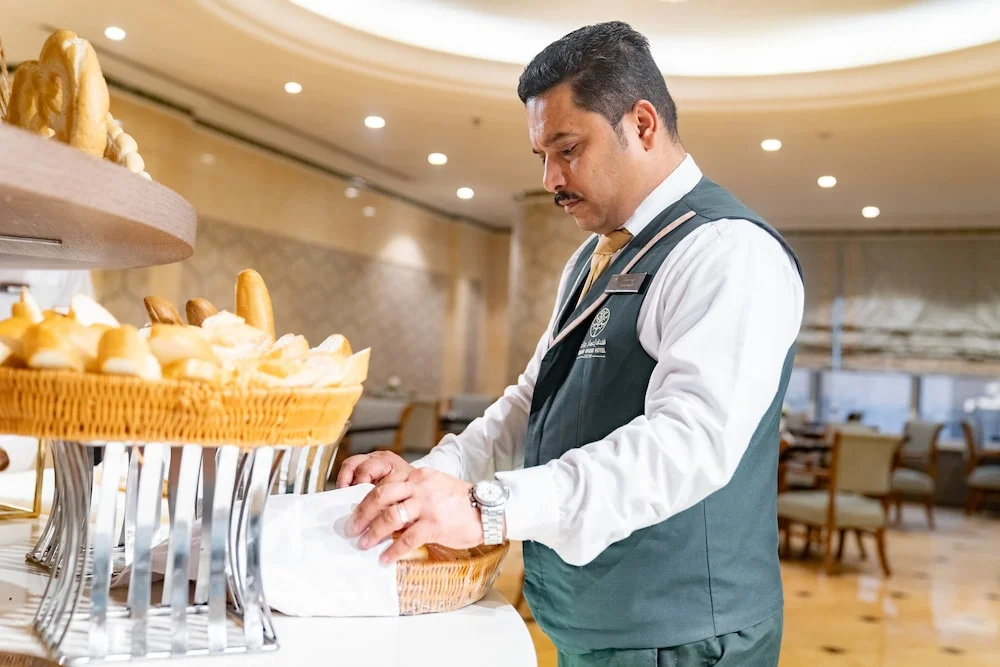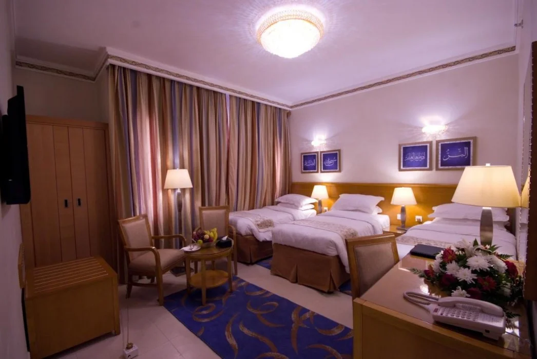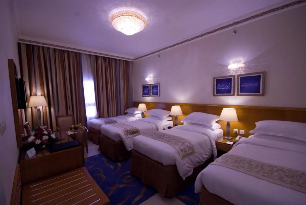 Located on Ibrahim Al Khalil Street in Mecca, Emaar Grand Hotel (formerly Dar Al Eiman Grand) is 750 metres from the holy Haram. It offers elegantly decorated, air-conditioned rooms equipped with satellite TV and a wardrobe. Rooms feature blue carpeted and tiled floors, rich fabrics, and ornate furnishings. Complimentary wireless internet access is available. The hotel restaurant provides 24-hour room service. A buffet breakfast is available daily (for a fee). Concierge services, dry cleaning/laundry services, a 24-hour front desk, and luggage storage are available. Self-parking is available onsite (subject to charges). King Abdulaziz International Airport is approximately 60 minutes away by car. The Great Mosque of Makkah and Abraj Al-Bait Towers are within a 15-minute walk.